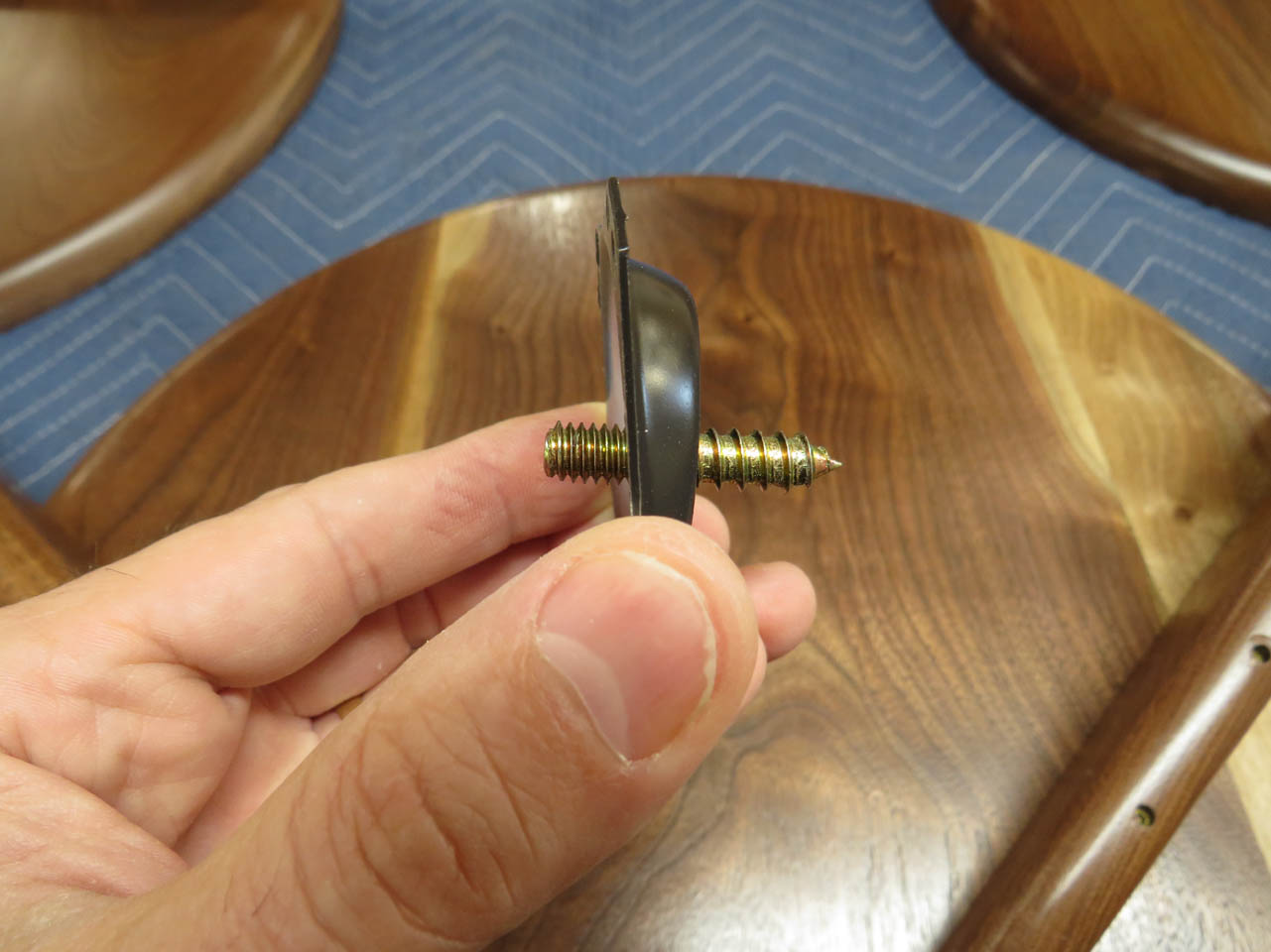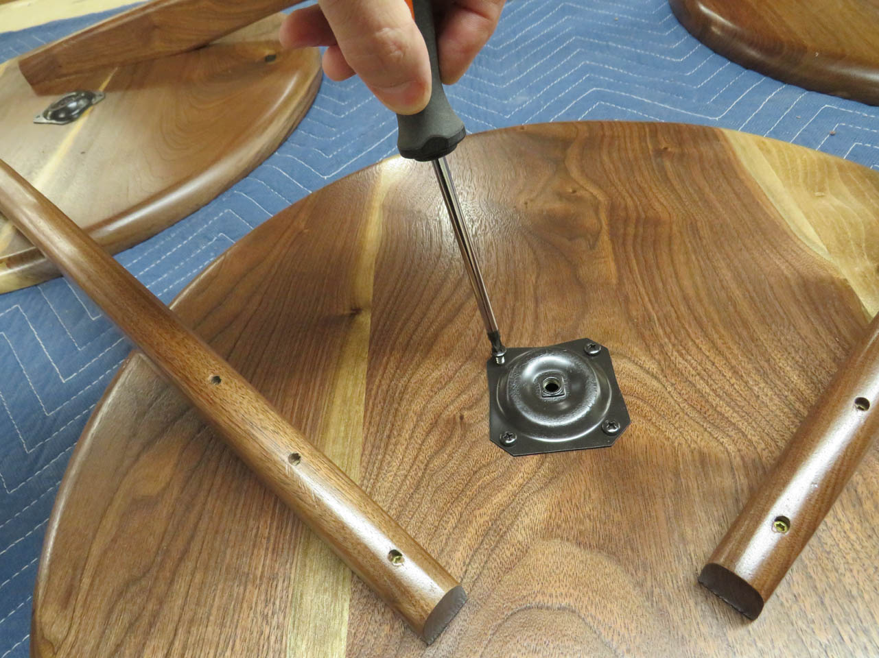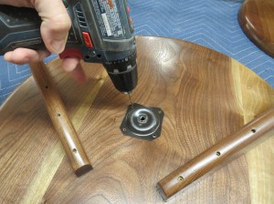 Now I can orient each mounting plate so that the legs will point away from the center and screw each one of them down.