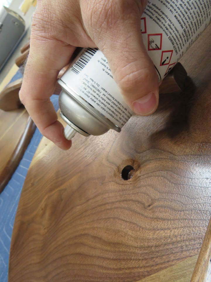 To seal the bare wood, I sprayed a coat or two of spray lacquer in each hole.
