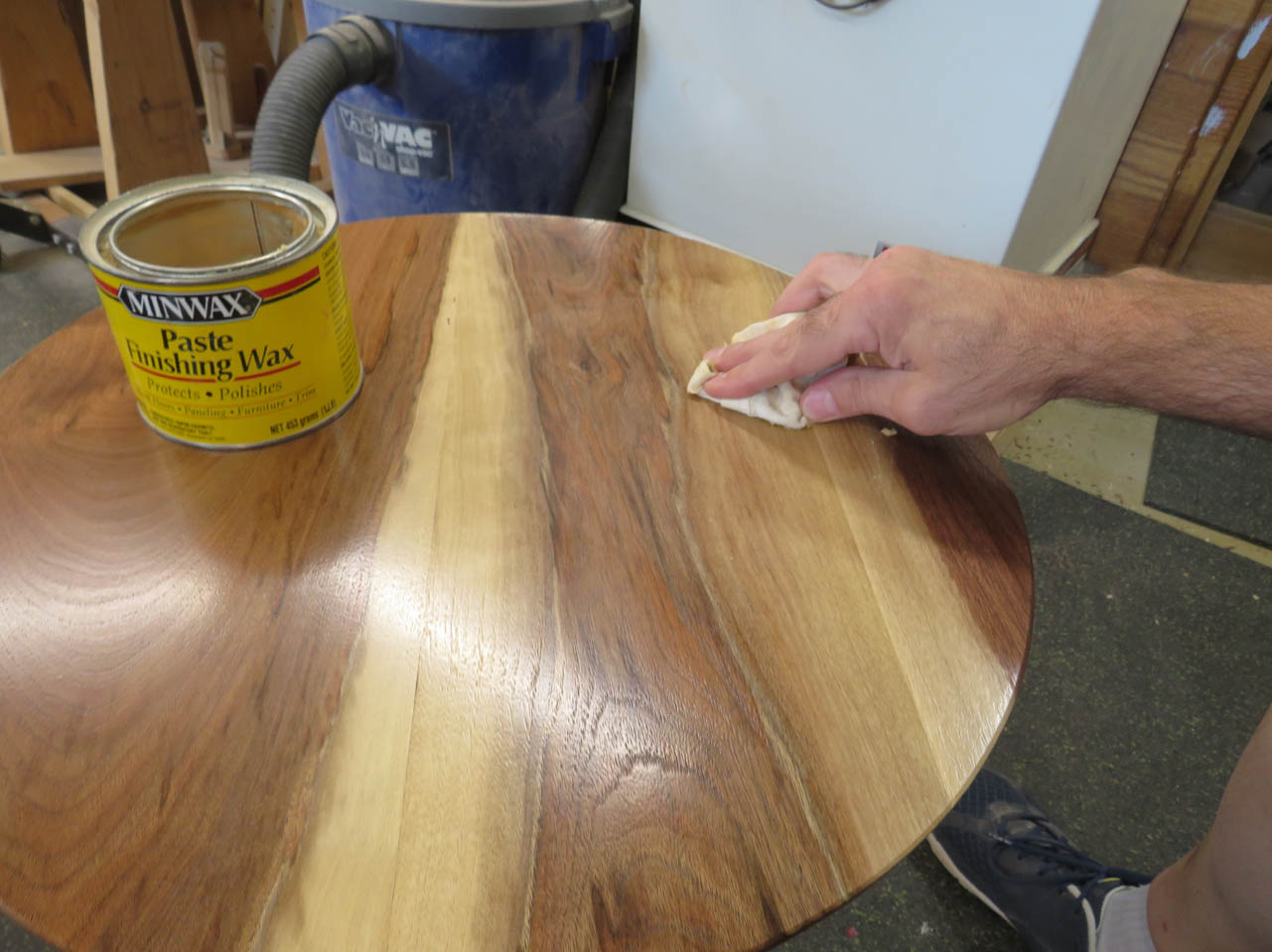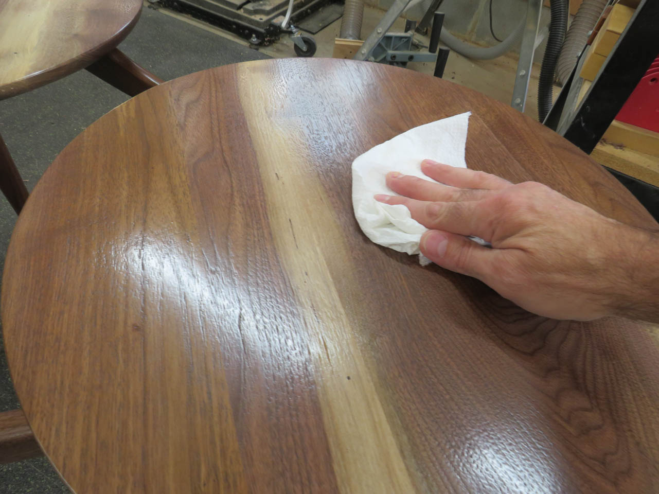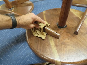 While the table is laying upside down I took the opportunity to buff out the finish and remove any dust nibs that may have settled while the finish was drying.
