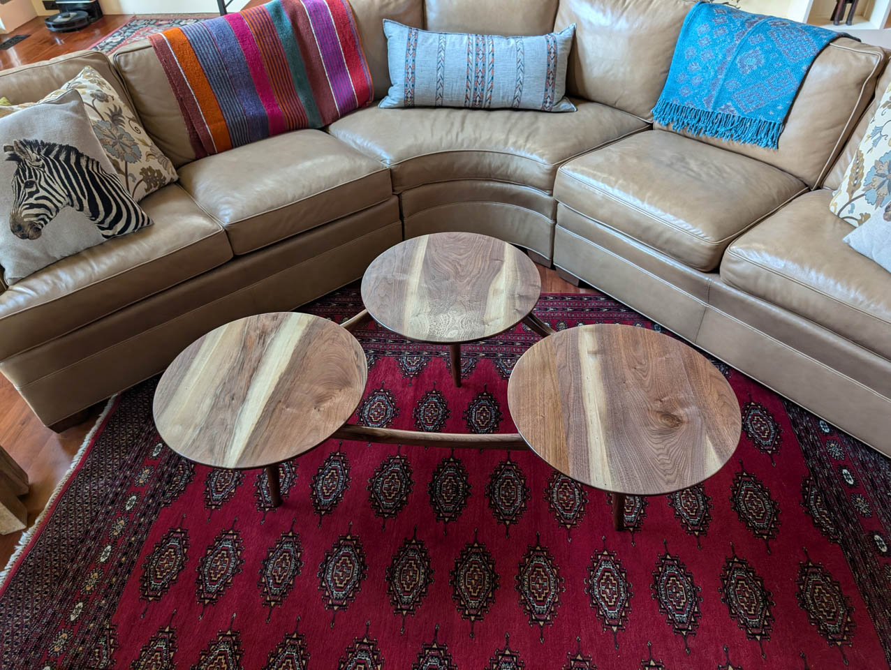 The table was finished so I brought it over to the clients to see how it looked in their living room. They were very happy with it.