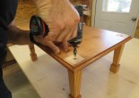 The final coat of polyurethane is dry on the tops, so I can peel off the masking and do my final assembly. With the lower section of the table already … Continue reading
