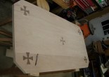 I started out today with planing down a piece of walnut to 1/8″ thick. This piece will be for the cross that will be inlaid on the door I just … Continue reading